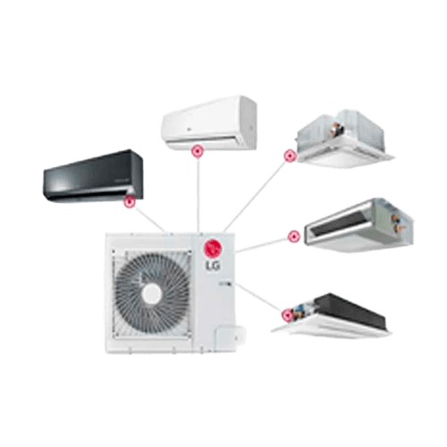 Una sola unidad condensadora exterior conectada a múltiples unidades interiores. La solución para climatizar varios ambientes sin multiplicar los equipos afuera — menos impacto visual en fachada, menor costo de instalación y una sola línea de mantenimiento. Disponibles en configuraciones de 2 a 4 zonas, compatibles con unidades interiores tipo split mural, cassette o piso-techo según el ambiente.